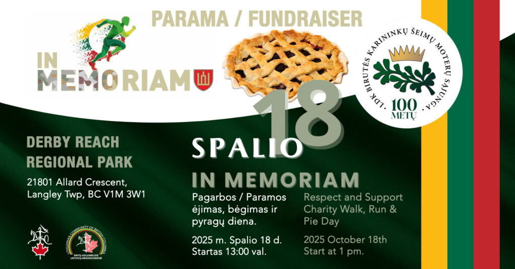 The Lithuanian Community of British Columbia warmly invites everyone to join the “In Memoriam” Charity Walk/Run, a heartfelt tribute to the Lithuanian soldiers who passed away this year. This event is dedicated to honouring their memories and supporting their families.